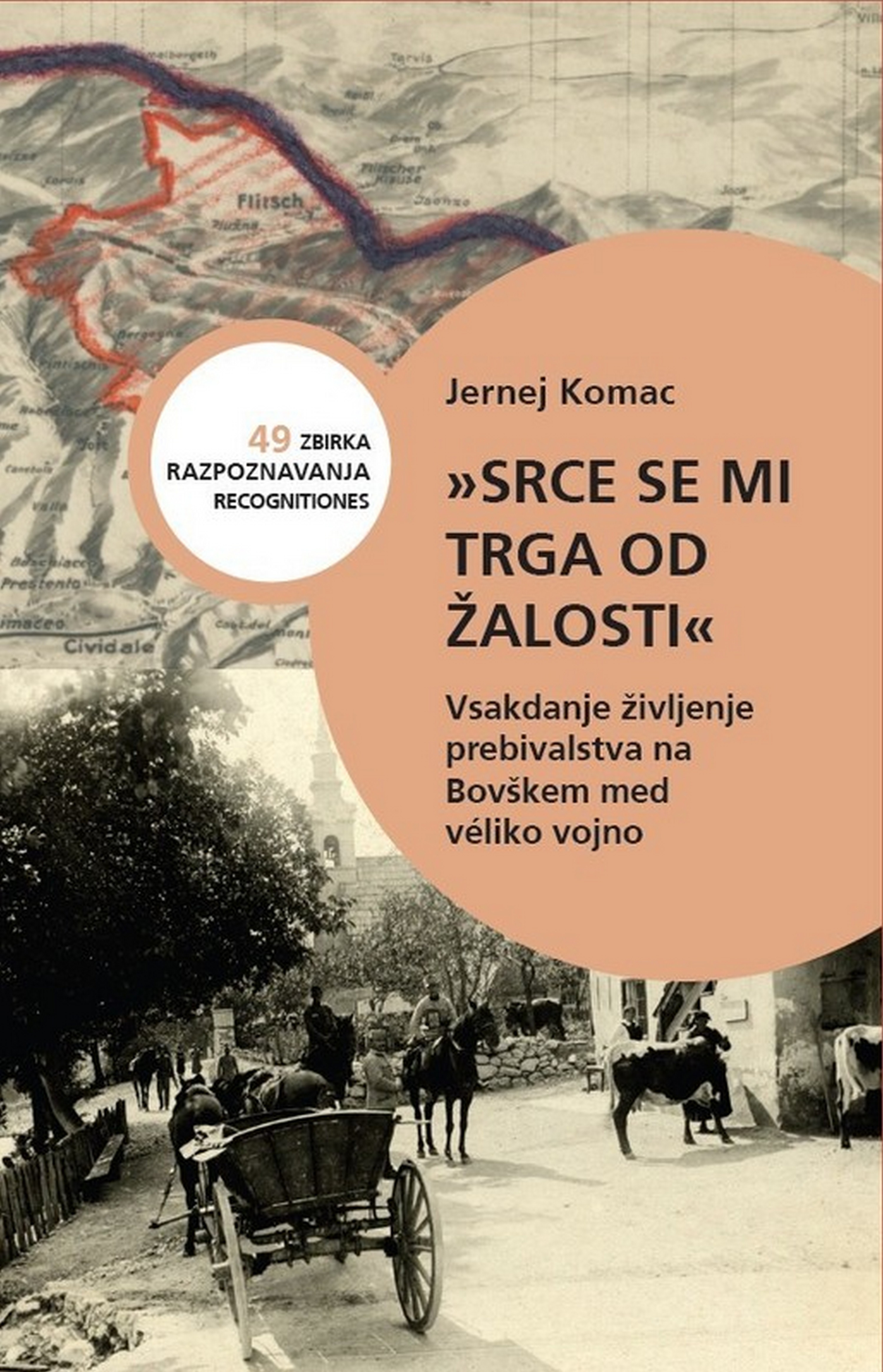 1Obdobje med letoma 2014 in 2018 je zaznamovala poplava razprav, monografij in drugih del o prvi svetovni vojni, pri čemer pa kljub velikemu obsegu raziskovanih tem marsikaj še vedno ostaja slabo ali celo nedokumentirano. Ohranjanje zagona pri objavljanju študij o vojni tudi onkraj jubilejnega petletja je zato nedvomno dobrodošel pojav. Najnovejša pridobitev s tega področja v slovenskem zgodovinopisju je monografija »Srce se mi trga od žalosti«: vsakdanje življenje prebivalstva na Bovškem med véliko vojno zgodovinarja in arhivista Jerneja Komaca, nastala na temelju magistrske naloge, obranjene prav v letu stoletnice konca vojne. Monografija je kot že 49. naslov izšla v zbirki Razpoznavanja, ki jo izdaja Založba Inštituta za novejšo zgodovino v sozaložništvu z Arhivom Republike Slovenije.